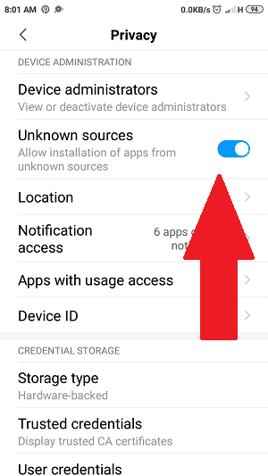 - Step 2: Enable the option to “Allow installation of apps from Unknown Sources.”